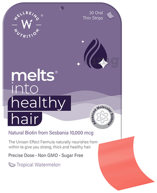 Wellbeing Nutrition Melts into Healthy Hair Biotin 10,000mcg Tropical Watermelon Disintegrating Strip Sugar Free