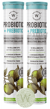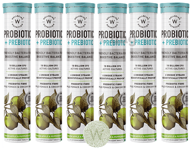 Wellbeing Nutrition Probiotic + Prebiotic Fibre with 18 Billion CFU | Effervescent Tablet for Gut Health | Flavour Green Apple & Peppermint