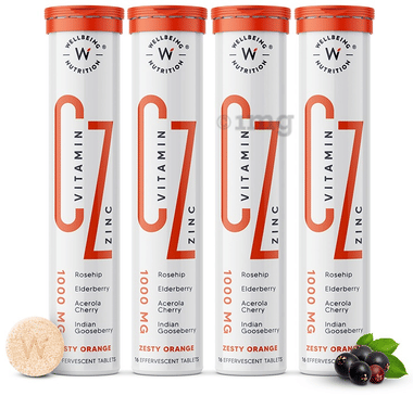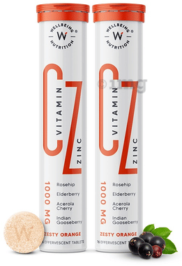Wellbeing Nutrition Vitamin C Zinc Effervescent Tablet for Immunity & Skin Health | Zesty Orange