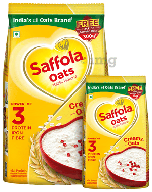 Saffola Oats Instant Rolled Soft & Creamy Oats | Power of Protein, Iron & Fibre with Saffola Oats 300gm Free