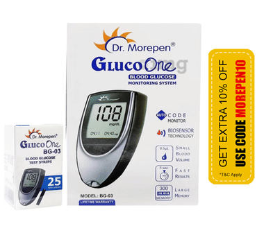 Dr Morepen BG 03 Gluco One Glucose Monitoring System Glucometer with Gluco One BG 03 Blood Glucose 25 Test Strip | Diabetes Monitoring Devices | Blood Glucose Monitors