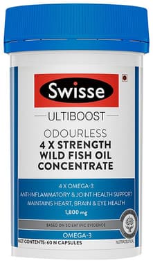 Swisse Ultiboost Odourless 4X Strength Wild Fish Oil | With 1800mg Omega 3 for Joints, Heart, Brain & Eyes | Capsule