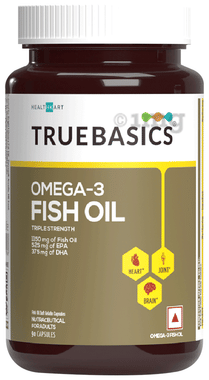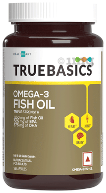 TrueBasics Omega 3 Triple Strength Fish Oil | for Brain, Heart & Joints | Soft Gelatin Capsule