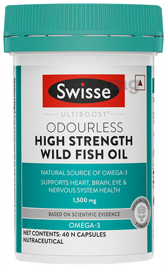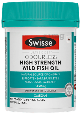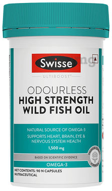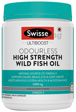 Swisse Ultiboost Odourless High Strength Wild Fish Oil Capsule with 1500mg Omega 3 | For Heart, Brain, Eye & Joint Health