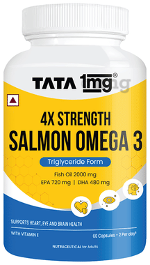 Salmon 4X Omega 2000 mg Salmon Fish Oil | Omega 3 for Heart, Brain & Eye Health | by Tata 1mg