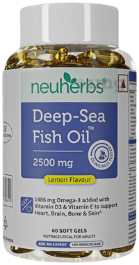 Neuherbs Deep Sea Omega 3 Fish Oil 2500mg (Triple Strength) Soft Gels with Vitamin D3 & E | EPA - 892mg | DHA - 594mg