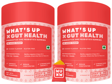 What's Up Wellness Gut Health Gummies | Pre & Probiotic Patented Strain |No Added Sugar(30 Each)