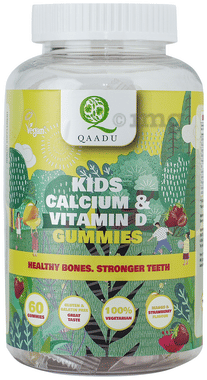 Qaadu Kids Calcium & Vitamin D Gummies | For Healthy Bones & Teeth | Flavour Mango & Strawberry