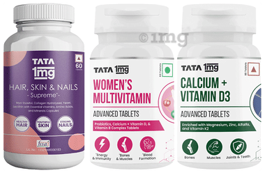 Combo Pack of Tata 1mg Women's Multivitamin Advanced Tablet (60) ,Calcium + Vitamin D3 Advanced Tablets (60) & Hair, Skin & Nails Supreme Capsule (60)