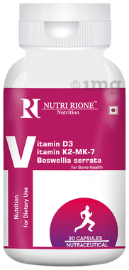 NutriRione Vitamin K2 with Vitamin D3 and Boswellia Serrata Veg Capsule for Bone Health
