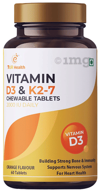 Eur Health Vitamin D3 & K2-7 for Bones, Muscles & Nervous System | Flavour Orange Chewable Tablet