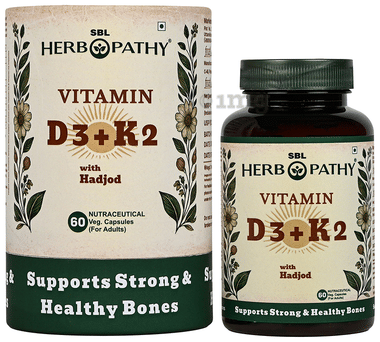 SBL Vitamin D3 + K2 with Hadjod Veg Capsule for Adults