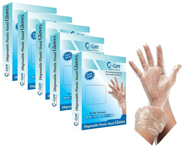 C Cure Disposable Plastic Hand Gloves (100 Each)