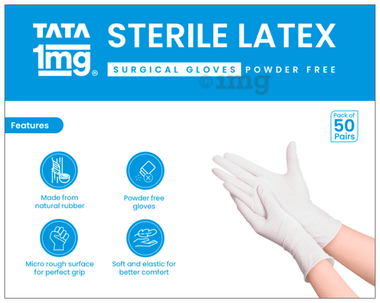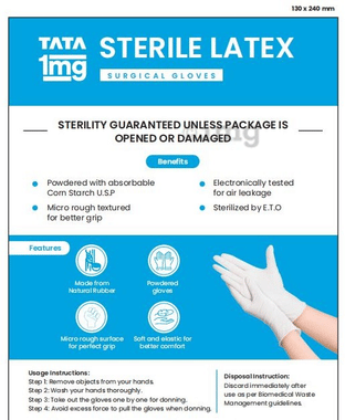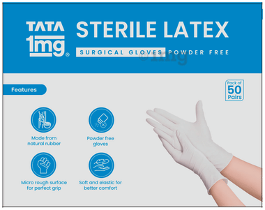 Tata 1mg Sterile Latex Surgical Gloves Powder Free 7
