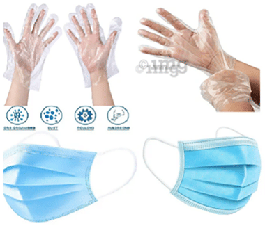 Fine Morning Pharma Combo Pack of Disposable 3 Ply Surgical Face Mask with Nosepin and Transparent Disposable Plastic Hand Gloves (100 Each)