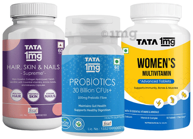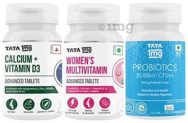 Combo Pack of Tata 1mg Women's Multivitamin Advanced Tablet (60),Calcium + Vitamin D3 Advanced Tablets (60) & Probiotics 30 Billion CFUs+ Capsule (60)