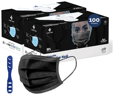 Care View CV2992 Sitra Approved 3 Ply Colored Disposable Surgical Mask with Built in Metal Nose Pin and 1 Melt Blown Layer (50 Each) Black