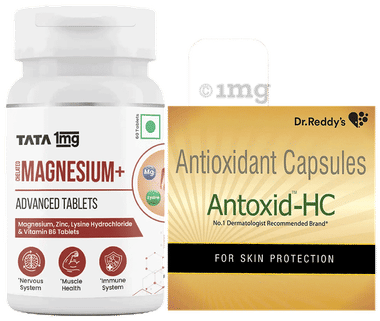 Combo Pack of Tata 1mg Chelated Magnesium Plus Tablet with Zinc (60) & Antoxid -HC Capsule (30)