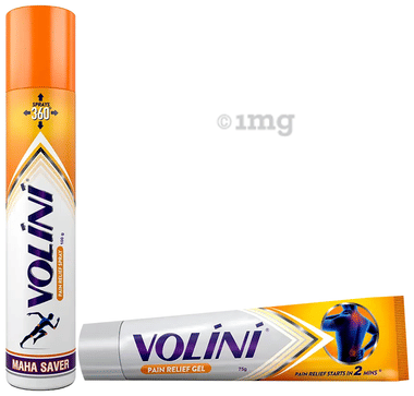 Combo Pack of Volini for sprain, muscle and joint pain Spray (100gm) & Volini Pain Relief Gel for Muscle, Joint & Knee Pain (75gm)