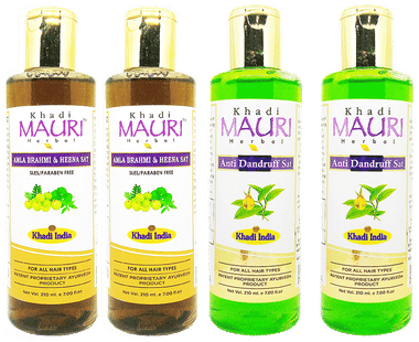 Khadi Mauri Herbal Combo Pack of Amla Brahmi Heena & Anti Dandruff Shampoo (210ml Each)