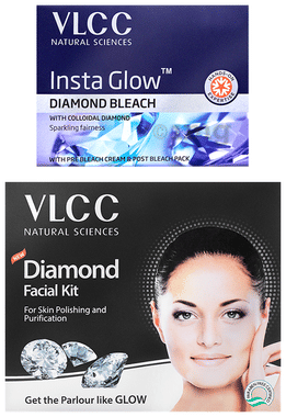 VLCC Combo Pack of Diamond Single Facial Kit (60gm) & Insta Glow Diamond Bleach (30gm)