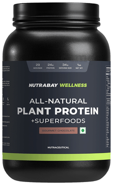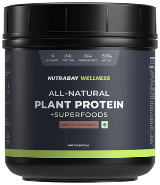 Nutrabay Wellness All-Natural Plant Protein + Superfoods | For Muscles & Digestion | Flavour Gourmet Chocolate