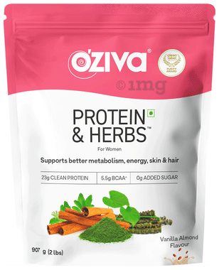 Oziva Protein & Herbs Whey Protein | For Metabolism, Energy, Skin & Hair | For Women| Flavour Vanilla Almond