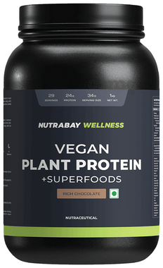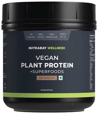 Nutrabay Wellness Vegan Plant Protein + Superfoods | For Muscles & Digestion | Flavour Rich Chocolate