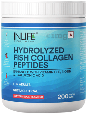 Inlife Hydrolyzed Marine Collagen Tripeptides Supplement Powder | Vitamin C, E, Biotin & Hyaluronic Acid | For Skin, Hair & Nails | Watermelon