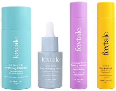 Foxtale Combo Pack of Hydrating Cleanser 100ml & Daily Hydrating Serum 30ml, Moisturizer 50ml and Dewy Sunscreen 50ml