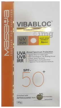 Vibabloc Sunscreen Gel SPF 50+ PA+++ | UVA/UVB, IRR & Blue Light Protection | Paraben-Free