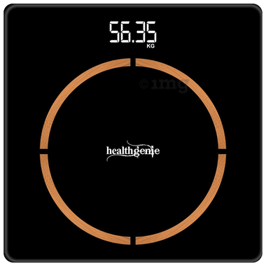 Healthgenie Digital Weight Machine Thick Tempered Glass LCD Display Black Copper Ring