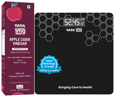 Combo Pack of Tata 1mg Digital Weighing Scale & Tata 1mg Organic Apple Cider Vinegar with the “Mother of Vinegar” (500ml)