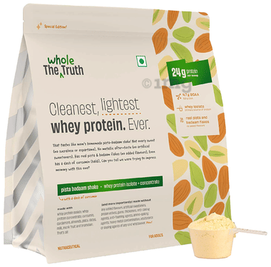 The Whole Truth Whey Protein 24g Protein/scoop | Isolate+Concentrate | Light & Easy to Digest Pista Badam