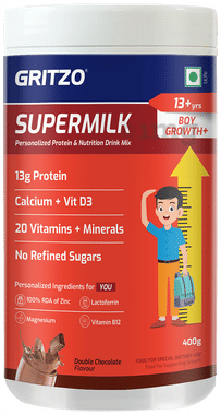 Gritzo SuperMilk Growth + (Formerly Height+) | 13g Protein Powder 13+ Yrs Boy Growth+ Double Chocolate