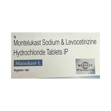 Manukast-L Tablet is a medicine that provides relief from symptoms such as a blocked or runny nose, sneezing, and itchy or watery eyes. This will make it easier for you to go about your daily activities. It rarely has any serious side effects, and you may only need to take it on days you have symptoms. If you are taking it to prevent getting symptoms, you should use it regularly to get the most benefit.