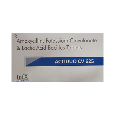 Actiduo CV 625 Tablet is a medicine that helps to kill the bacteria that cause infections. This combination medicine can be used to treat many different bacterial infections. It causes loss of the useful bacteria that are present naturally in our body. It contains probiotics that help restore the useful bacteria, improve digestion and enhance overall health. Actiduo CV 625 Tablet usually makes you feel better within a few days, but you should continue taking it as prescribed even when you feel better to make sure that all bacteria are killed and do not become resistant.