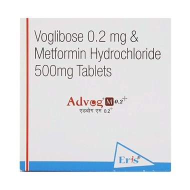Advog M 0.2 Plus Tablet is a medicine that helps to control high blood glucose (sugar) levels. It helps to slow down the breaking down of food in our intestine to simple glucose (sugar), thereby decreasing the rise in blood glucose levels after meals. It also helps get rid of extra glucose from your body through urine. Lowering blood glucose levels is an essential part of managing diabetes. If you can control the level, you will reduce the risk of getting any of the serious complications of diabetes such as kidney damage, eye damage, nerve problems and loss of limbs.