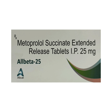 Allbeta 25 Tablet ER helps lower your blood pressure and makes it easier for your heart to pump blood around your body. This reduces the chances of you having a heart attack. It can also reduce the risk of dying if it is given immediately after a heart attack. This medicine needs to be taken regularly to be effective, so keep taking it even if you feel well. Do not stop without talking to your doctor.