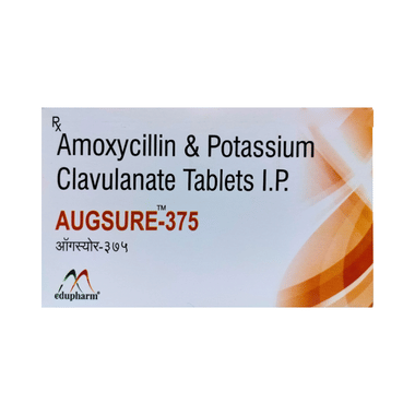 Augsure 375 Tablet is a medicine that is used to treat bacterial infections. It can treat many bacterial infections such as ear, sinus, throat, lung, urinary tract, skin, teeth, joints, and bones. It usually makes you feel better within a few days, but you should continue taking it as prescribed even when you feel better to ensure all bacteria are killed and do not become resistant.