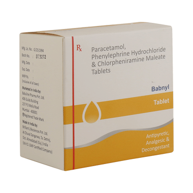 Babnyl Tablet is a combination medicine that helps relieve multiple symptoms of the common cold. It works by reducing fever and pain, relieving allergy symptoms such as sneezing and a runny nose, and decreasing nasal congestion. This helps improve breathing and relieve discomfort, such as headaches, body aches, and throat irritation. As symptoms improve, it supports faster recovery and helps you carry out daily activities more comfortably.