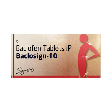 Baclosign 10 Tablet is a muscle relaxant that is used to relieve rigidity, inflammation, and swelling in conditions that affect skeletal muscles. It works by blocking chemical messengers in the brain that are responsible for such symptoms. It effectively relieves muscle stiffness or spasm, thereby improving muscle movement.
