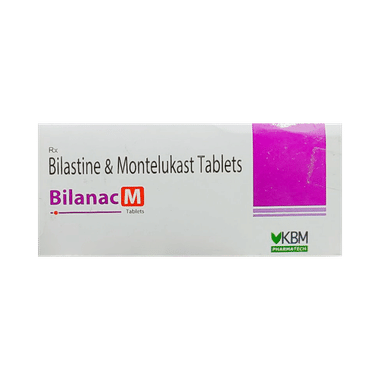 Bilanac M Tablet provides relief from allergic symptoms such as blocked or runny nose, sneezing, and itchy or watery eyes caused by seasonal hay fever (allergic rhinitis), seasonal allergies, and other allergies. It works by reducing certain substances in the body that are responsible for the allergic symptoms. Bilanac M Tablet reduces swelling in the airways and gives relief from allergic reactions.