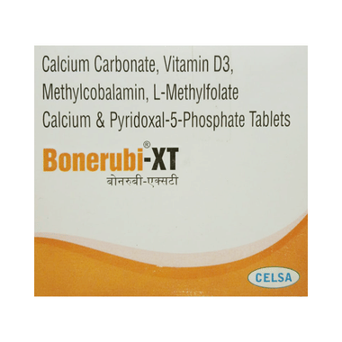 Bonerubi-XT Tablet is a nutritional supplement that is used to prevent or treat low blood calcium levels in people who do not get enough calcium from their diets. It improves the level of calcium in the body. This helps keep your bones strong and healthy and reduce the risk of any bone disorders like osteoporosis. Calcium is also necessary for normal functioning of nerves, cells, muscle and heart. This combination contains other vitamins and minerals that help in strengthening the immune system, improve metabolism of the body and aid in the proper functioning of the nervous system. Taking Bonerubi-XT Tablet improves general health and enhances the quality of life.