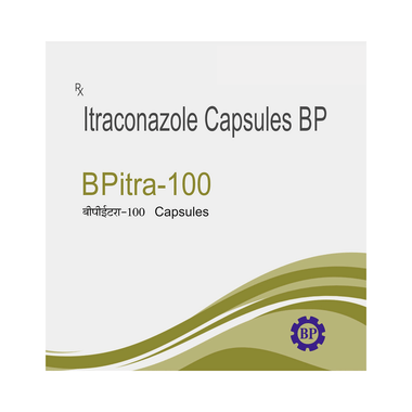 BPitra 100 Capsule is an antifungal medicine. It is used to treat infections in different parts of the body caused by fungi. It works by killing and stopping the growth of fungi. This provides relief from various symptoms caused by the infection and speeds up the healing process. You should keep taking the medicine until you complete the dose even if you get better. This will prevent the infection from returning.
