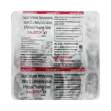 Calditop-XT Tablet is a nutritional supplement that is used to prevent or treat low blood calcium levels in people who do not get enough calcium from their diets. It improves the level of calcium in the body. This helps keep your bones strong and healthy and reduce the risk of any bone disorders like osteoporosis. Calcium is also necessary for normal functioning of nerves, cells, muscle and heart. This combination contains other vitamins and minerals that help in strengthening the immune system, improve metabolism of the body and aid in the proper functioning of the nervous system. Taking Calditop-XT Tablet improves general health and enhances the quality of life.
