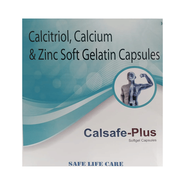 Calsafe-Plus Softgel Capsule is a combination of three medicines: Calcitriol, Calcium Carbonate and Zinc Sulfate which treat osteoporosis. Calcitriol helps your body effectively absorb Calcium Carbonate and additionally supports the muscles needed to avoid falls. Calcium Carbonate and Zinc Sulfate help build and maintain bones.