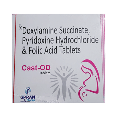 Cast-OD Tablet blocks the action of chemicals in the body that can make you feel or be sick during pregnancy. This medicine helps you cope up with nausea or vomiting that occurs due to hormonal changes during pregnancy and helps you complete the term without much discomfort. It also contains nutritional supplements that improve your baby’s immune system, enhance the baby’s brain development and also help reduce nausea and vomiting during pregnancy.