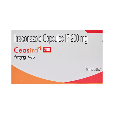 Ceastra Capsule is an antifungal medicine. It is used to treat infections in different parts of the body caused by fungi. It works by killing and stopping the growth of fungi. This provides relief from various symptoms caused by the infection and speeds up the healing process. You should keep taking the medicine until you complete the dose even if you get better. This will prevent the infection from returning.