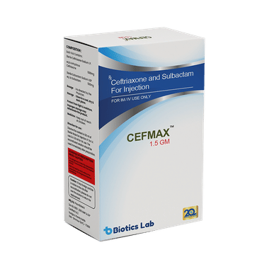 Cefmax 1.5 GM Injection contains two different medicines, Ceftriaxone and Sulbactum, that work together to kill the bacteria that cause infections. Ceftriaxone works by stopping the growth of bacteria. Sulbactam reduces resistance and enhances the activity of Ceftriaxone against bacteria.